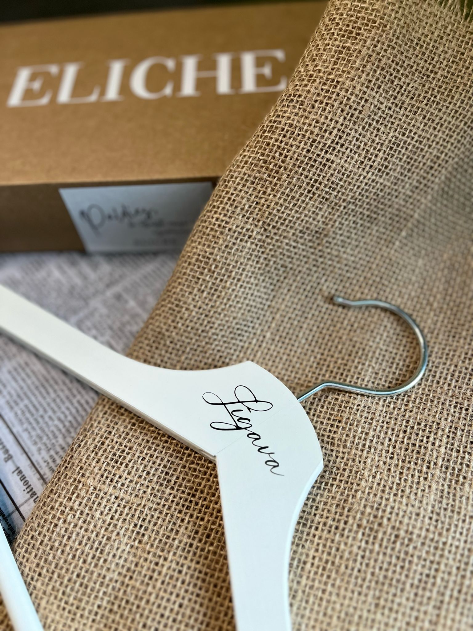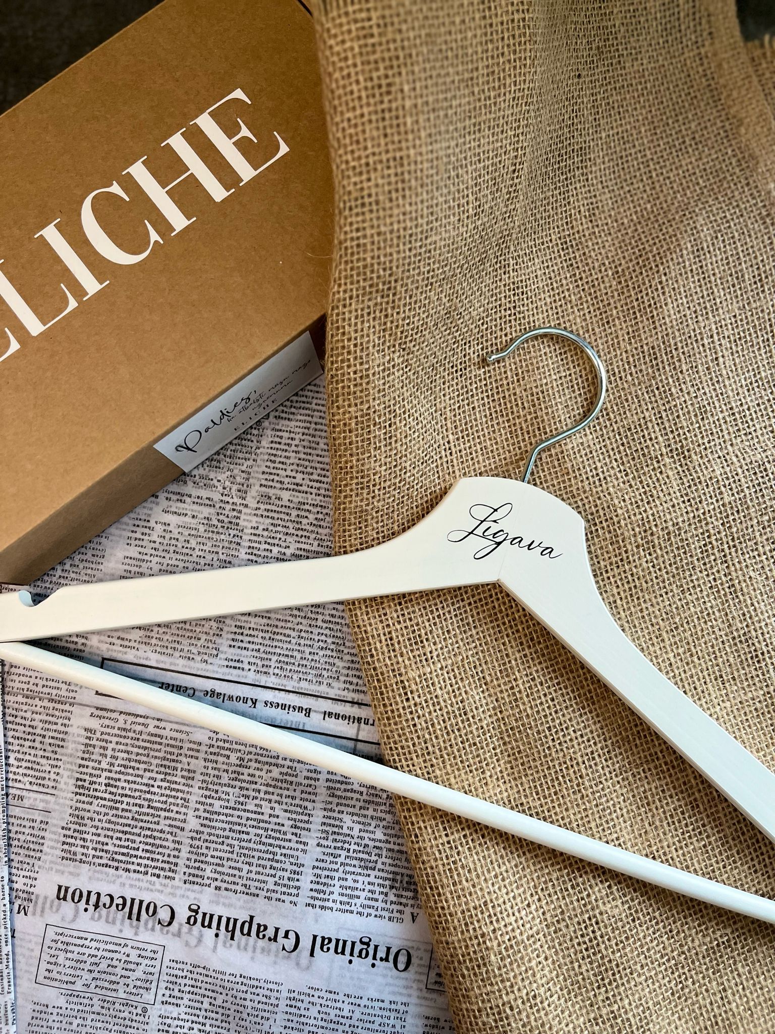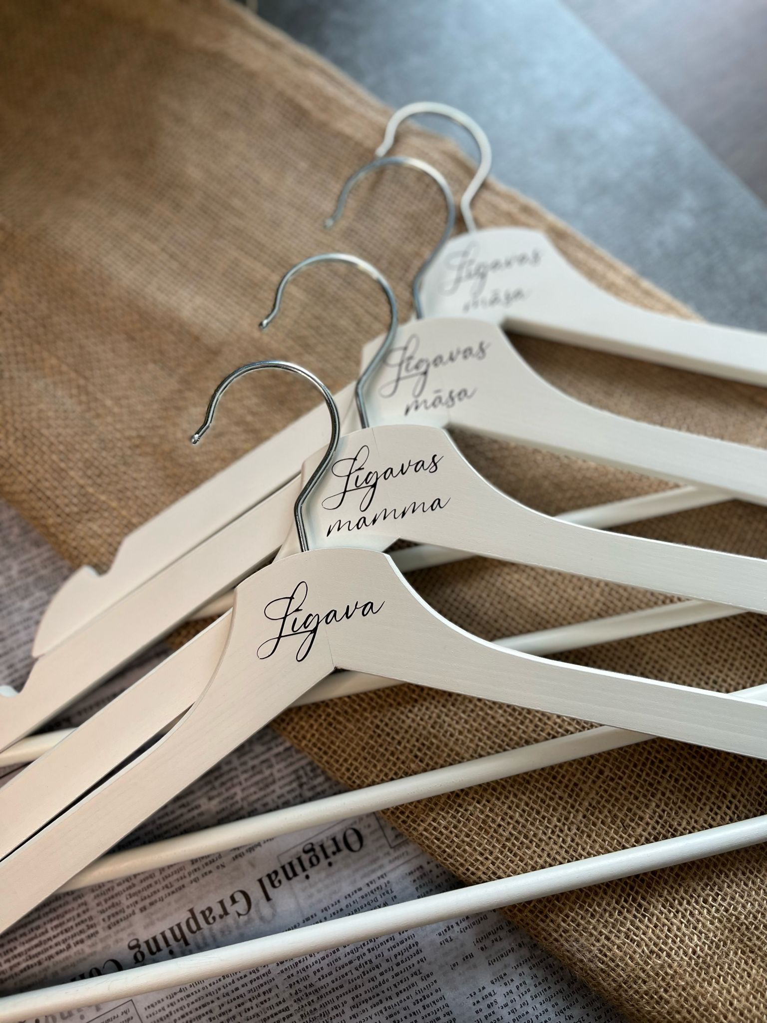 Piedāvājam baltus drēbju pakaramo "Līgava" ar gatavu dizainu melnā krāsā