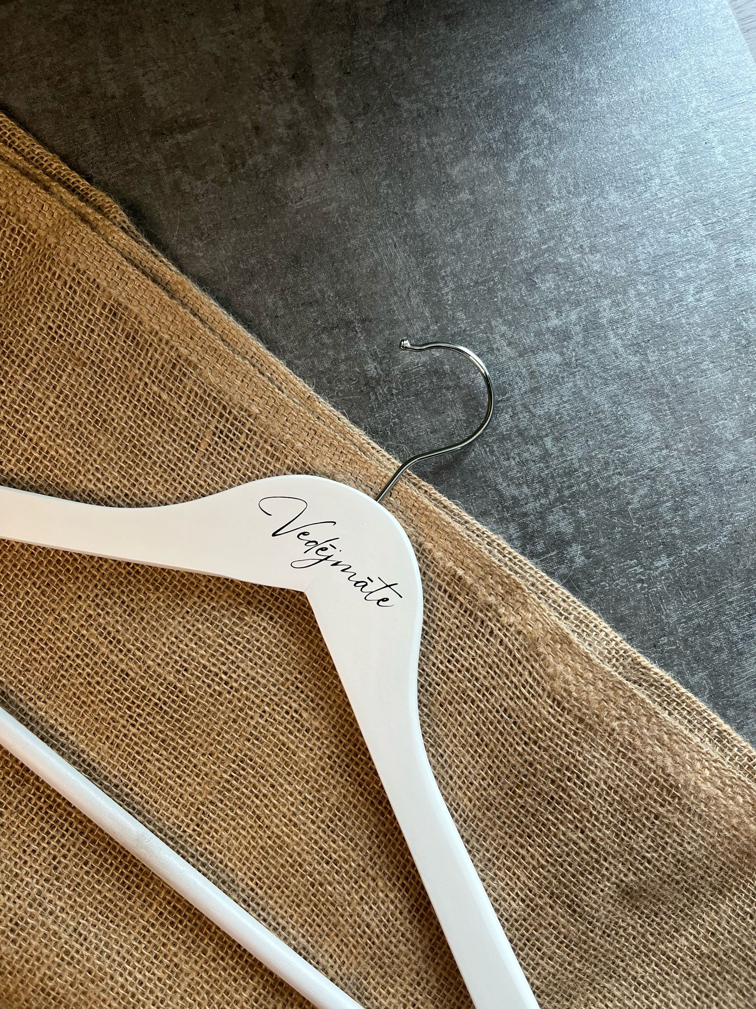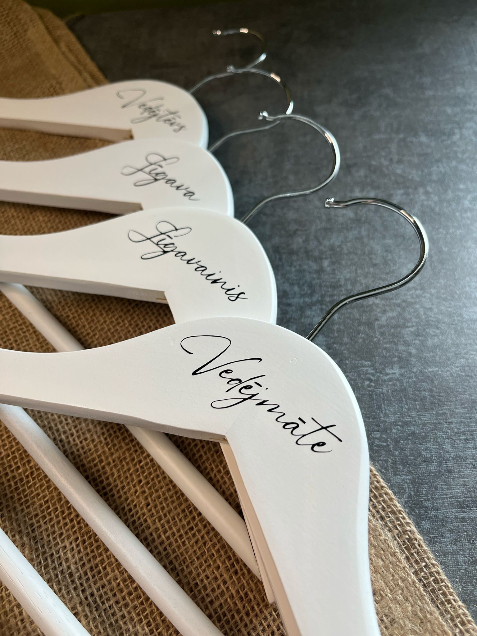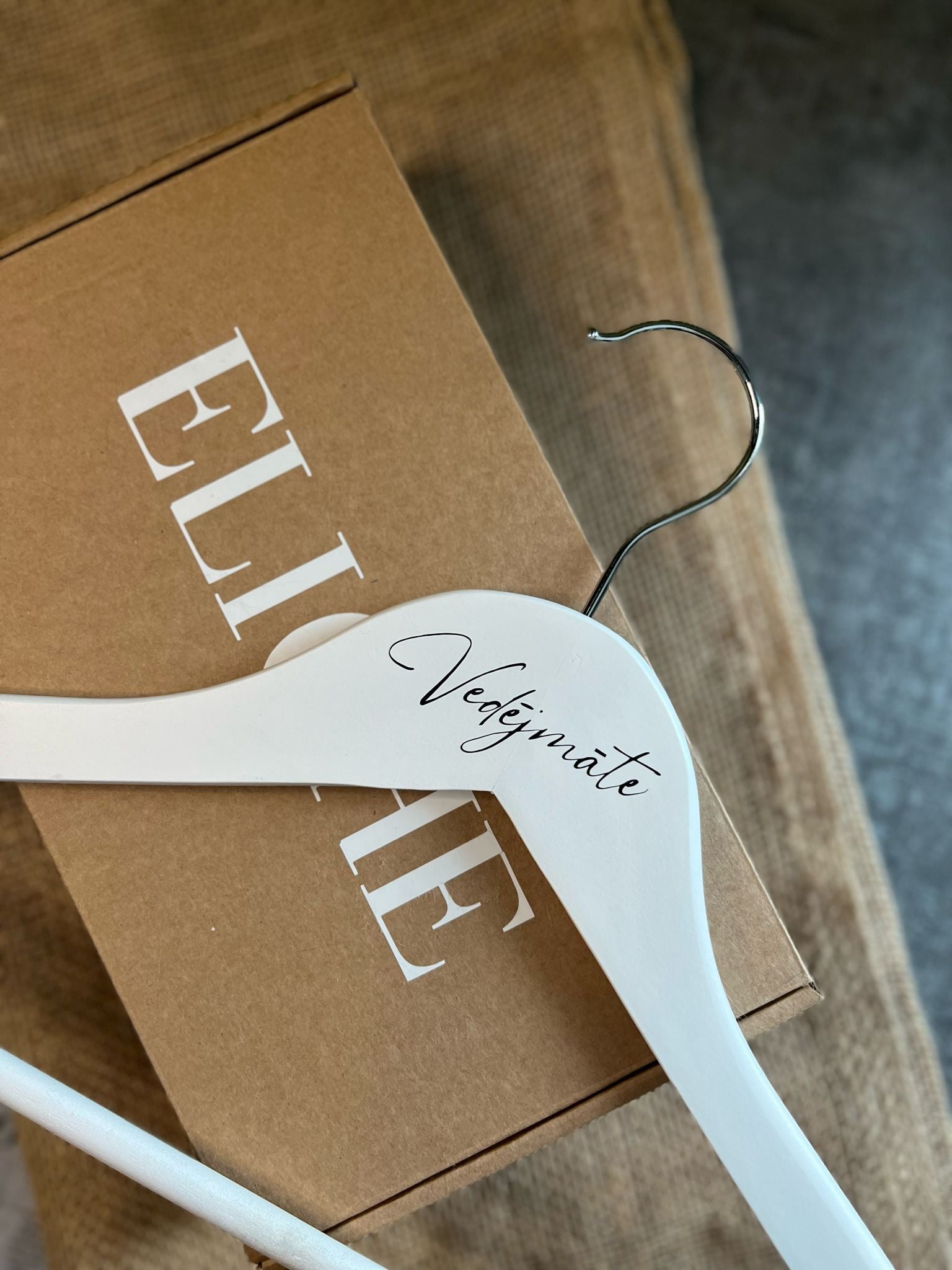 Piedāvājam baltus drēbju pakaramo "Vedējmāte" ar gatavu dizainu melnā krāsā