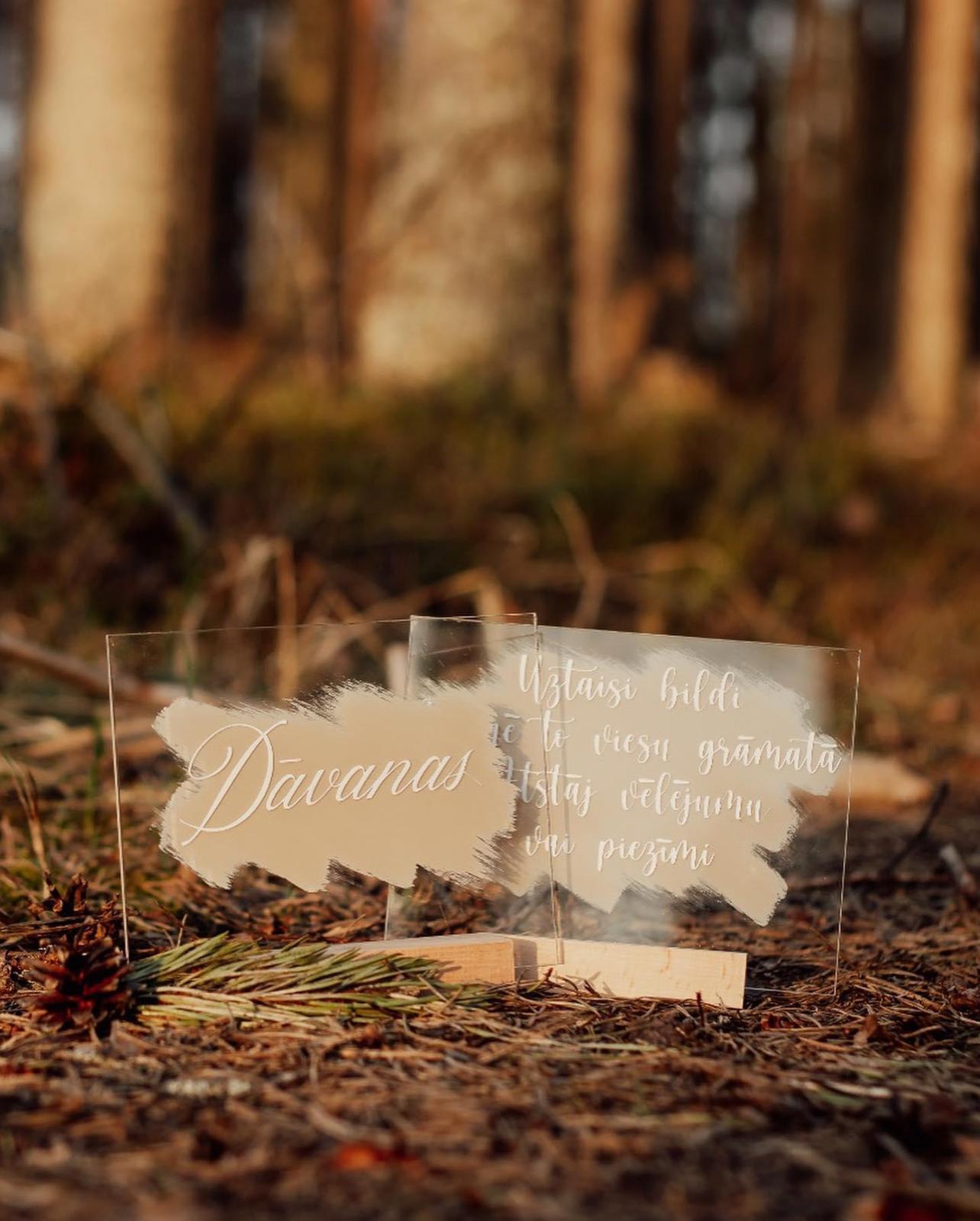 Akrila norāde dāvanu galdam "Dāvanas" kāzām