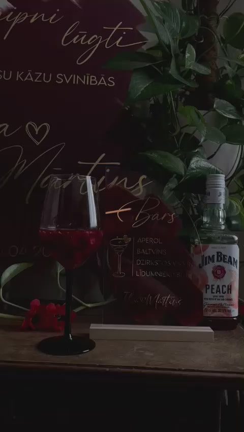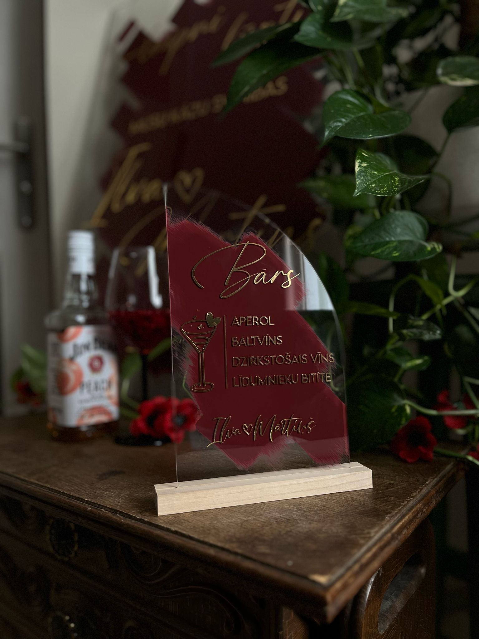 Izgatavota ar mīlestību un rūpēm, šī pusarkas formas bāra karte ir pielāgota jūsu kāzām.