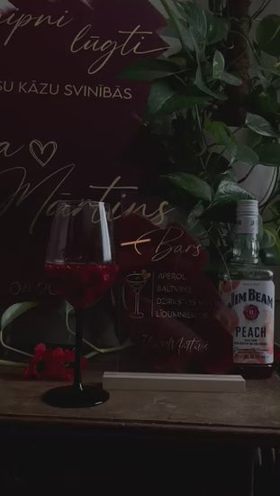 Piedāvājam mūsdienīgu un eleganti dizainētu bāra karti XL izmērā. Katrs mūsu produkts ir izgatavots no augstas kvalitātes akrila un stāvēs stabilā koka statīvā. Pusarkas forma un izmēri 25 x 15 cm.