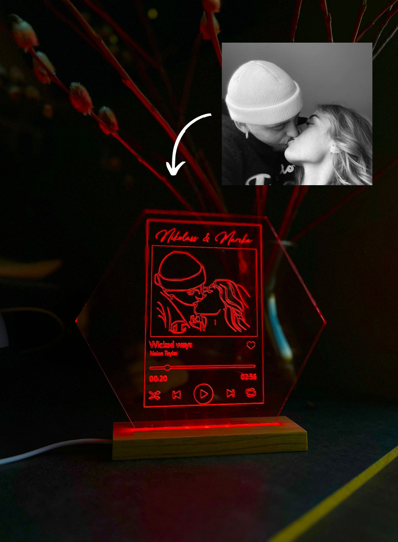 Dažkārt mums ir grūti rast ideju unikālai dāvanai. Tāpēc, ja meklējat unikālu dāvanu, kas pārsteigs sev tuvu cilvēku, ar šo oriģinālo lampu jūs viņus iecienīsiet pilnībā. Varat ievietot savus vārdus, jubilejas datumu, īsu veltījumu vai ko citu. Izvēlies tu! Pielāgojiet savu LED naktslapmu ar fotoattēliem. Ja jums ir citas prasības personalizācijai, lūdzu, nosūtiet mums e-pastu. Šī ir arī lieliska dāvana Tēta dienai, Māmiņdienā, Ziemassvētkos vai pat otrai pusītei Valentīndienā