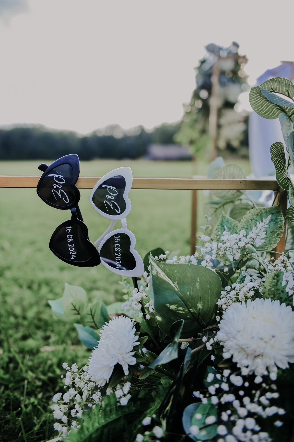 Personalizētu baltu un melnu ballīšu, kāzu vai kādu citu pasākumu brilles ar baltu personalizāciju (2gb)
